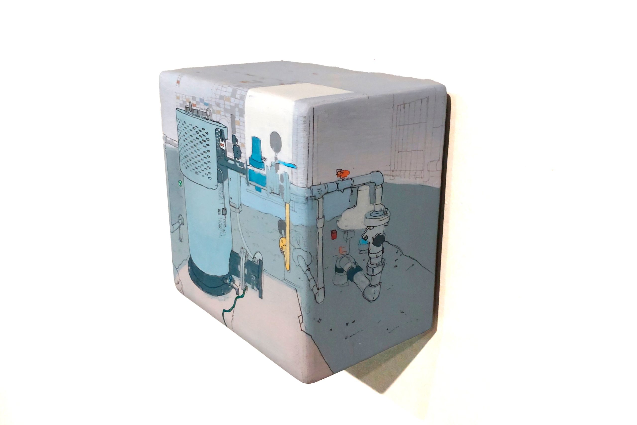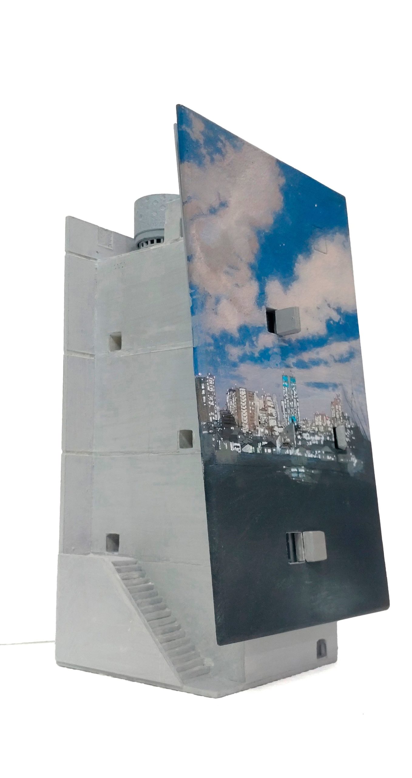 acrylic paint, sand, cement, polystyrene foam, wood