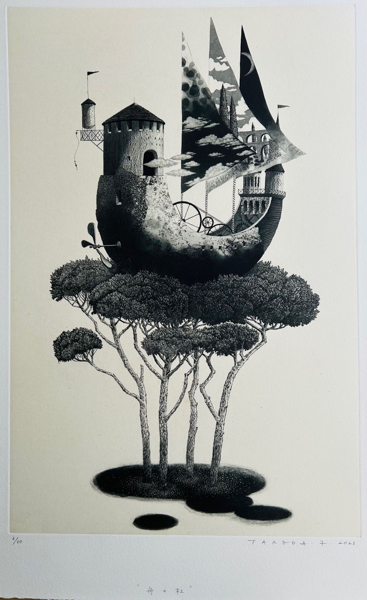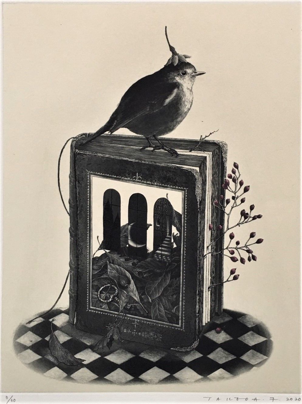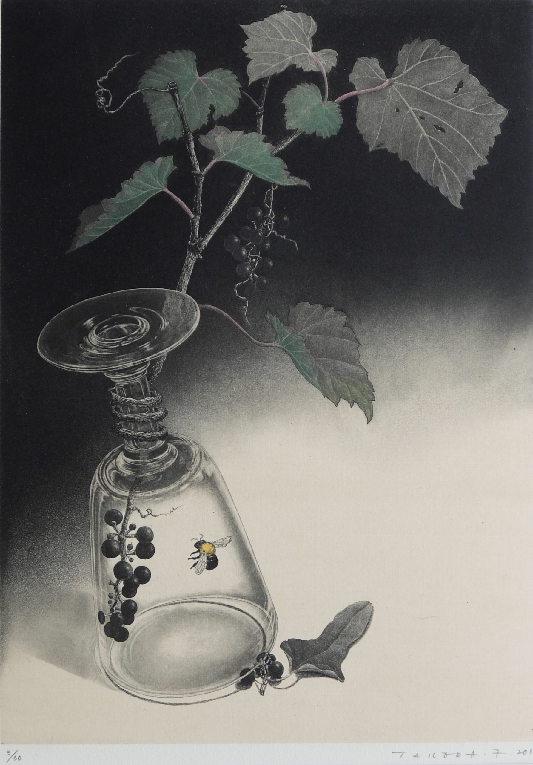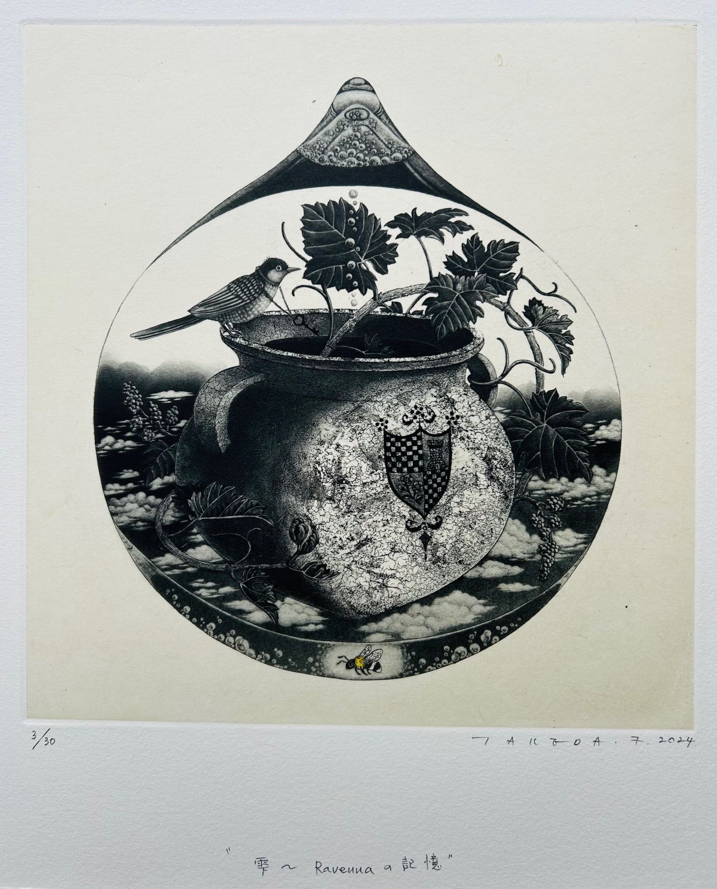 2003年京都左京区の大文字山を眺望できる吉田山中腹に画廊を開設以来、一貫して版画の紹介を手掛けてきました。若手から中堅、さらにベテランまで幅広く版画作家を紹介しています。例えば入江明日香、若木くるみ、宮本承司、西村涼、渡邊加奈子、山田彩加、ベテランでは今村由男、山下清澄などです。版画は様々な版種があり、そのテクニックをマスターしたうえで作家独自の構想力が必要です。版画のテクニックは現代アートで活躍する作家たち(例えばリー・ウーハン)も積極的に取り入れ新鮮な作品を発表しています。今後もこのように版画テクニックを駆使して創造的で魅力的な作品を創る作家を取り上げていきたいと思っています。なお、弊店は地下1階、地上2階の吹き抜けの画廊で、館内中央に天井から釣り下がったガラス張りの収蔵庫があり自由に収蔵作品をご覧いただけますので是非お立ち寄りください。